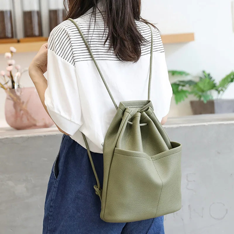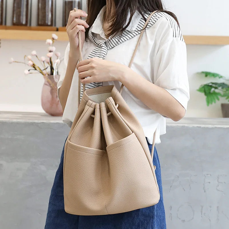 Soft Leather Shoulder Bag Backpacks Drawstring Pu Leather Bags For Women