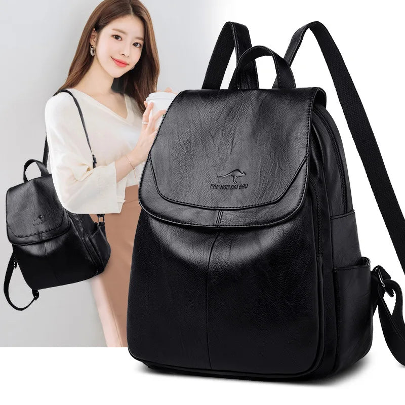 This stylish women's backpack is made of soft leather and offers a large capacity for all your essentials. It's perfect for everyday use.