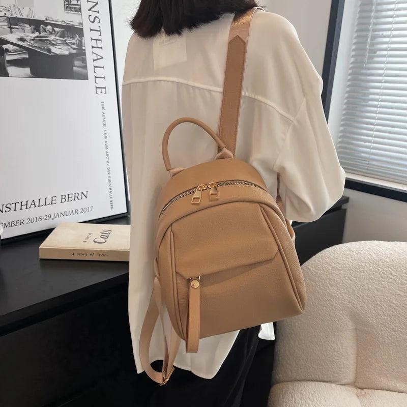 This soft leather women's backpack is perfect for travel or everyday use. Stay stylish and organized with its multiple compartments.