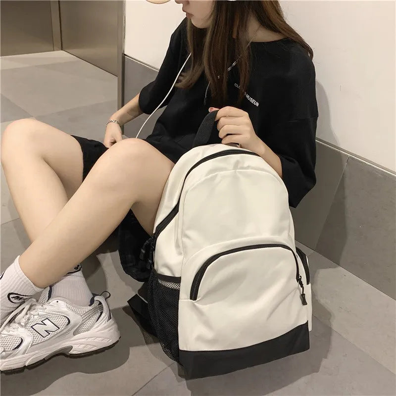 Solid Backpack School Bag For Teenage Girls Large Capacity Nylon Waterpr