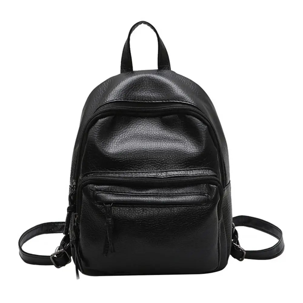 Solid Faux Leather Women Travel Backpack School Shoulders Bag