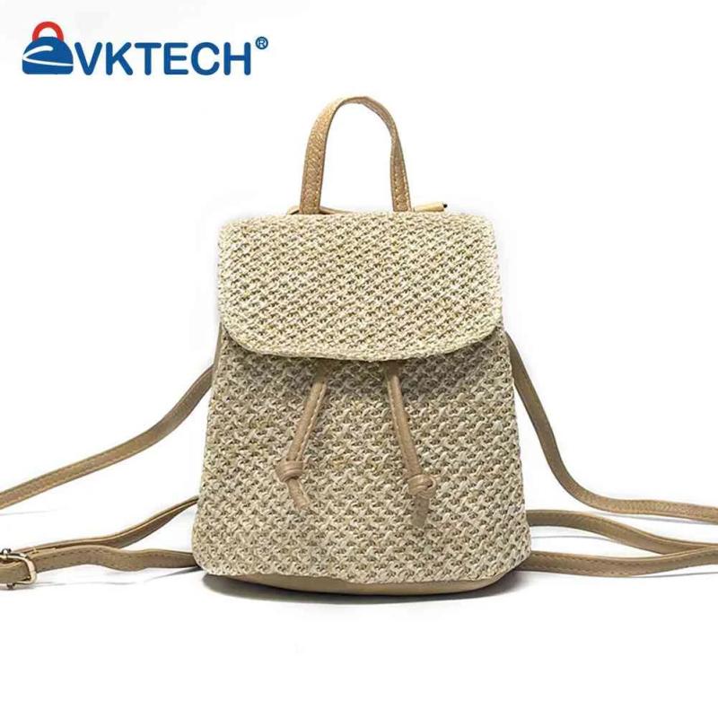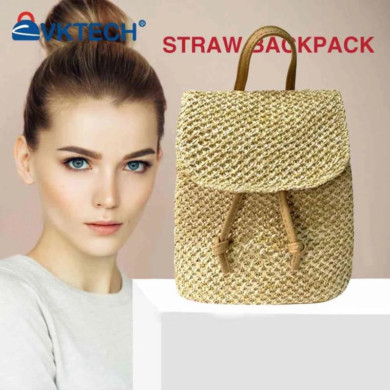 Straw Beach Shoulder Backpack Summer Woven Leather Purse
