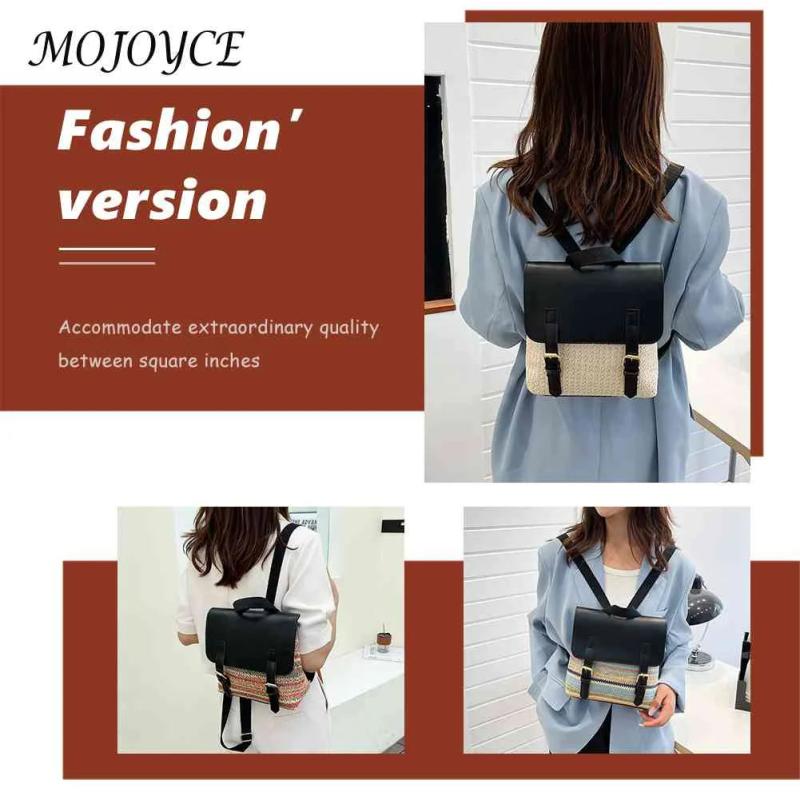 This stylish straw PU leather backpack is perfect for students and young women. It has a vintage design that adds a trendy touch to any outfit.