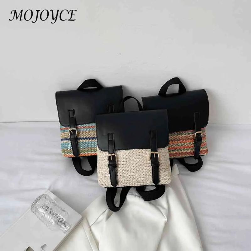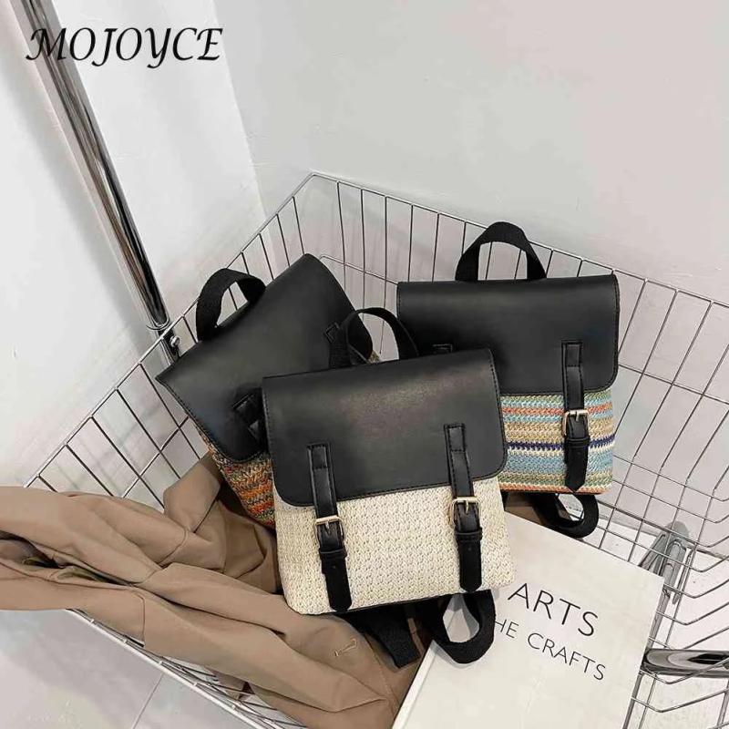 Straw PU Leather Vintage Female Backpack Pack Daypack Student Bag