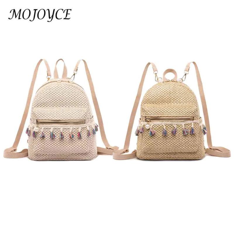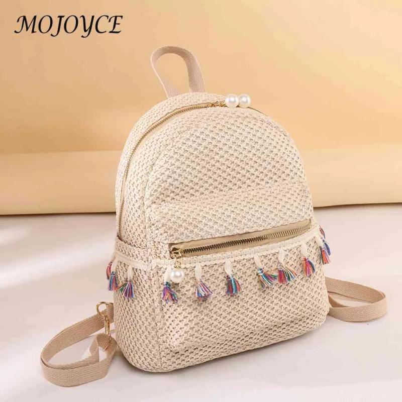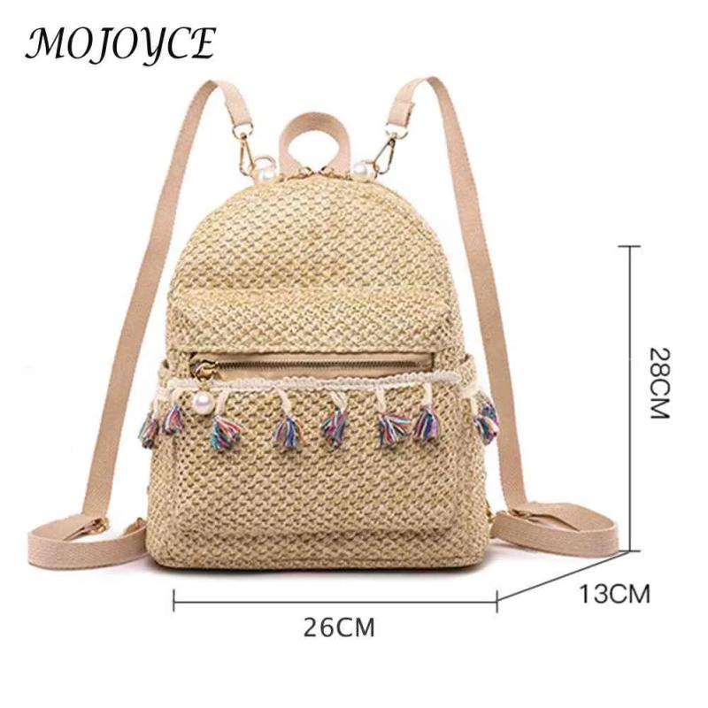 This stylish backpack is perfect for vacations and travel. Made of high-quality straw with tassel splicing, it offers multiple pockets and a secure zipper closure.