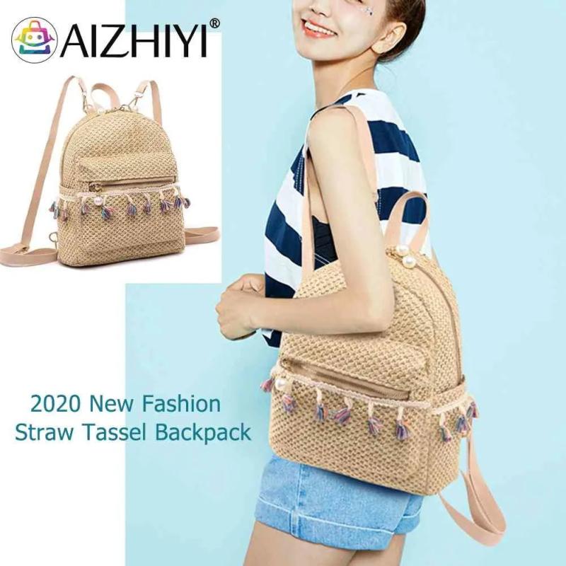 Straw Women Backpack Tassel Beach Shoulder Schoolbag Rucksack Mini Backpack