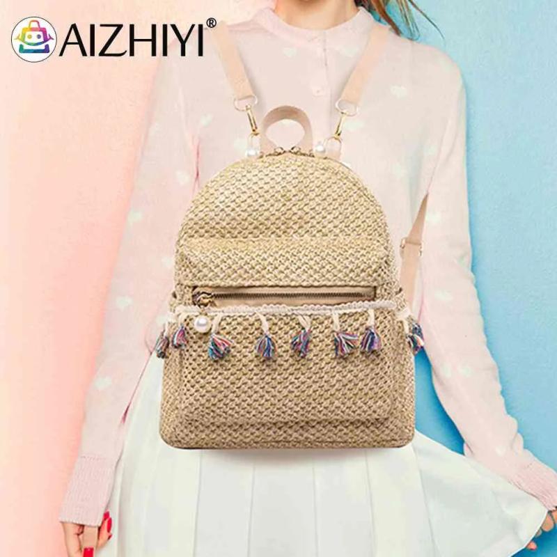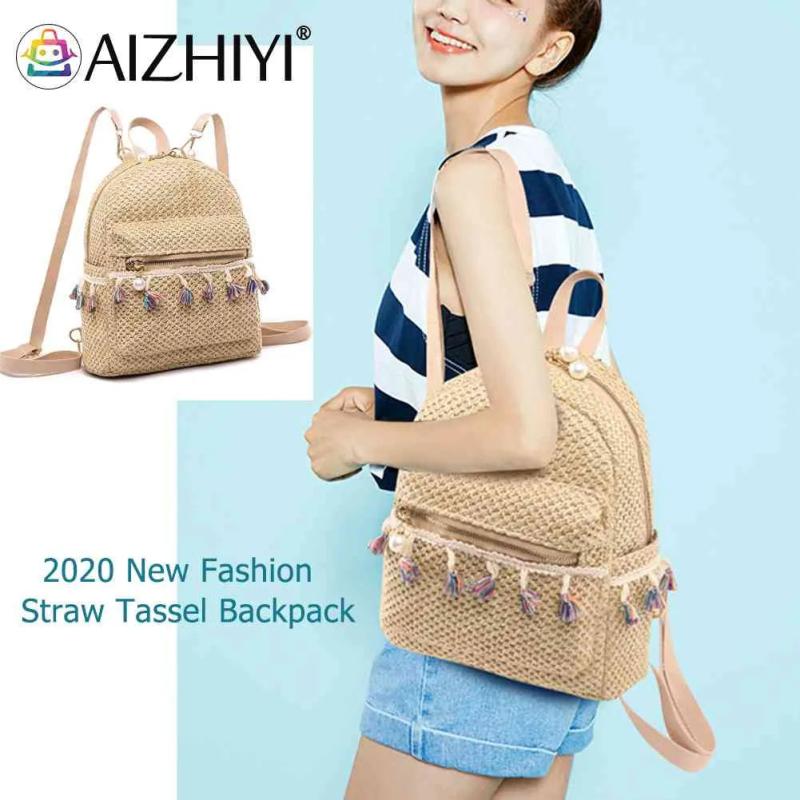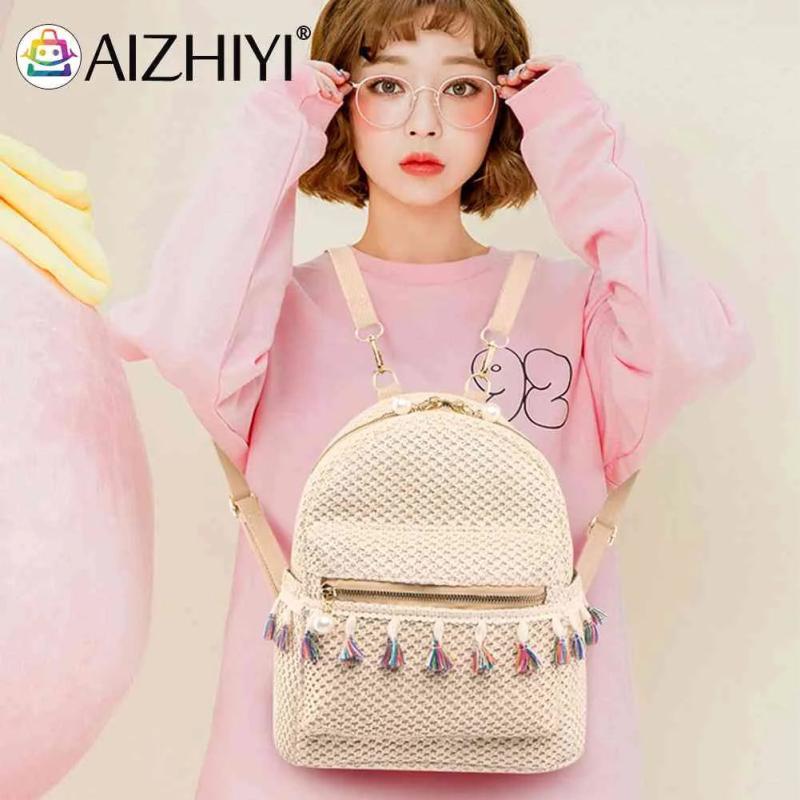Straw Women Backpack Tassel Shoulder Schoolbag