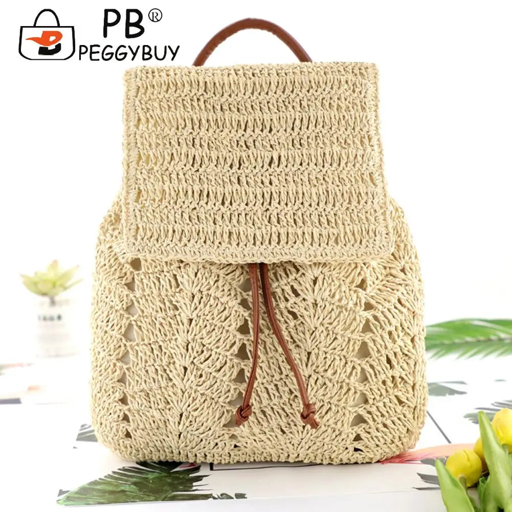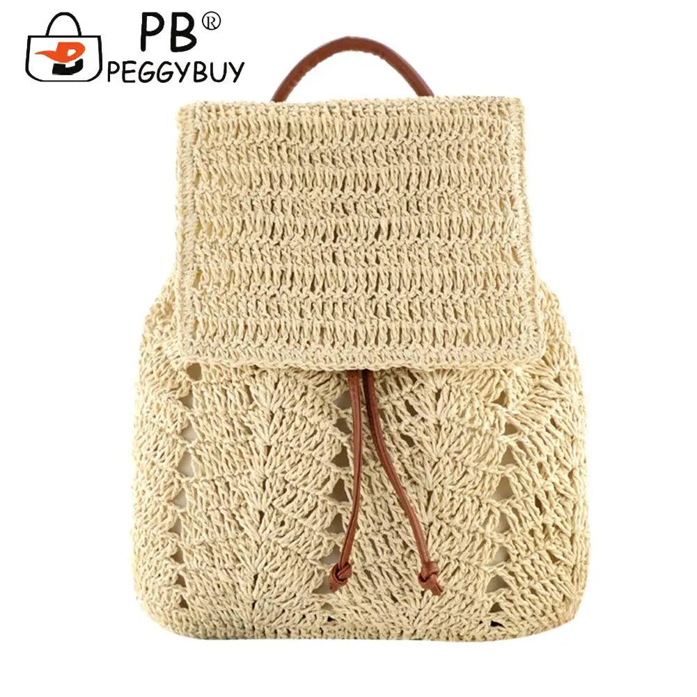 Straw Women Shoulder Bag Backpack Hand-Woven Beach Purse