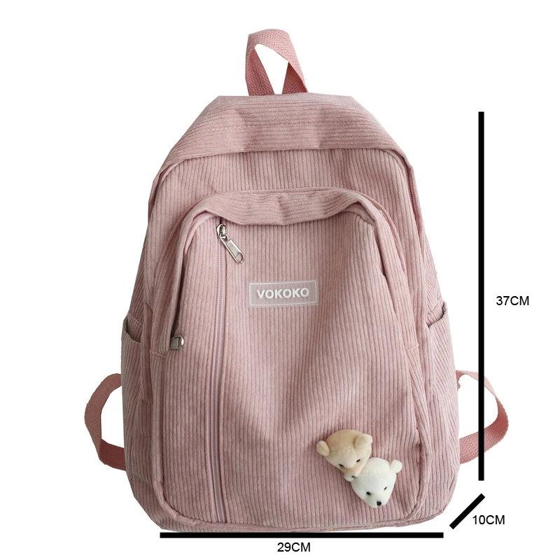 This fashionable backpack is made of high-quality corduroy material, perfect for school or casual outings.