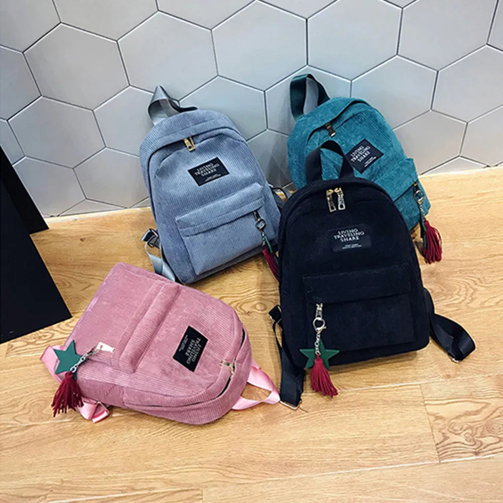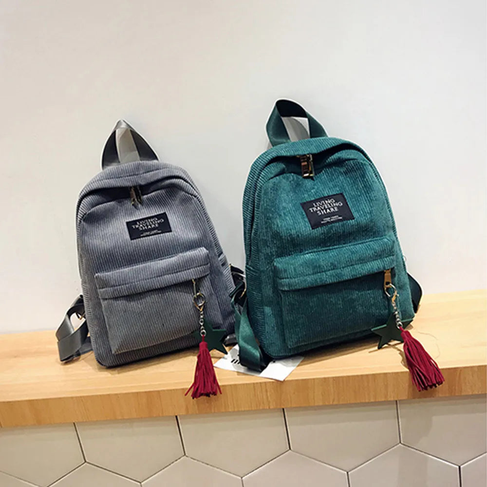 Striped School Backpack for Teenage Girls Tassel Shoulder Bag