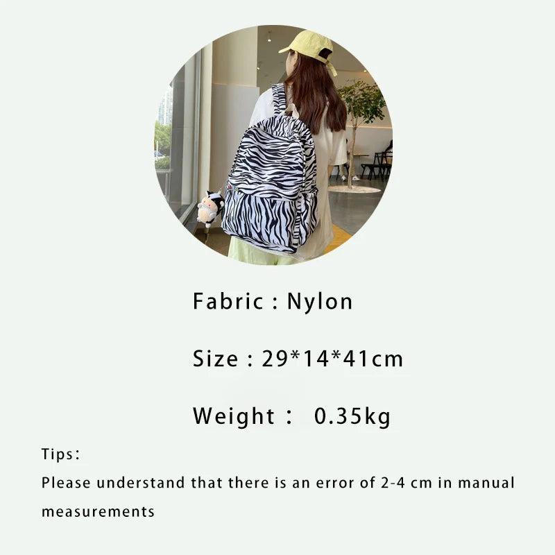 Striped Women Backpack Campus Students Schoolbag Female Cartoon Cow Print Daypac