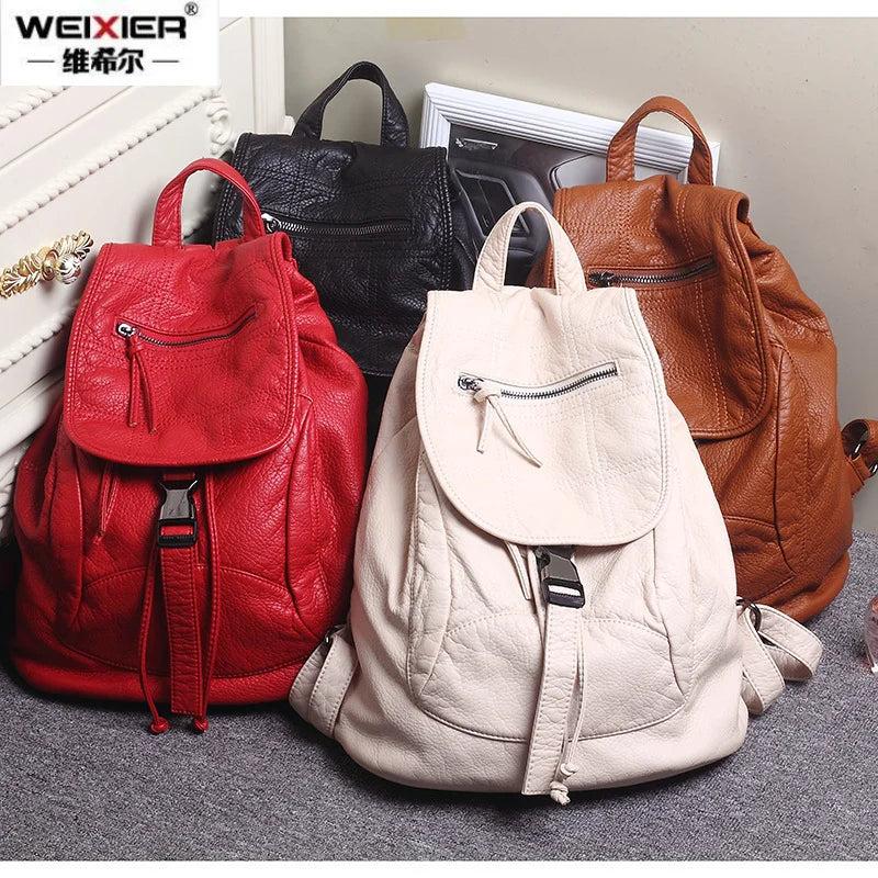 Stylish Washed Leather Women Backpacks Casual Shoulders Bag