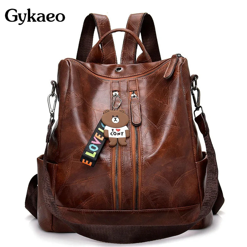 Summer Retro Women's Backpack Soft Leather School Bags for Teenage Girls