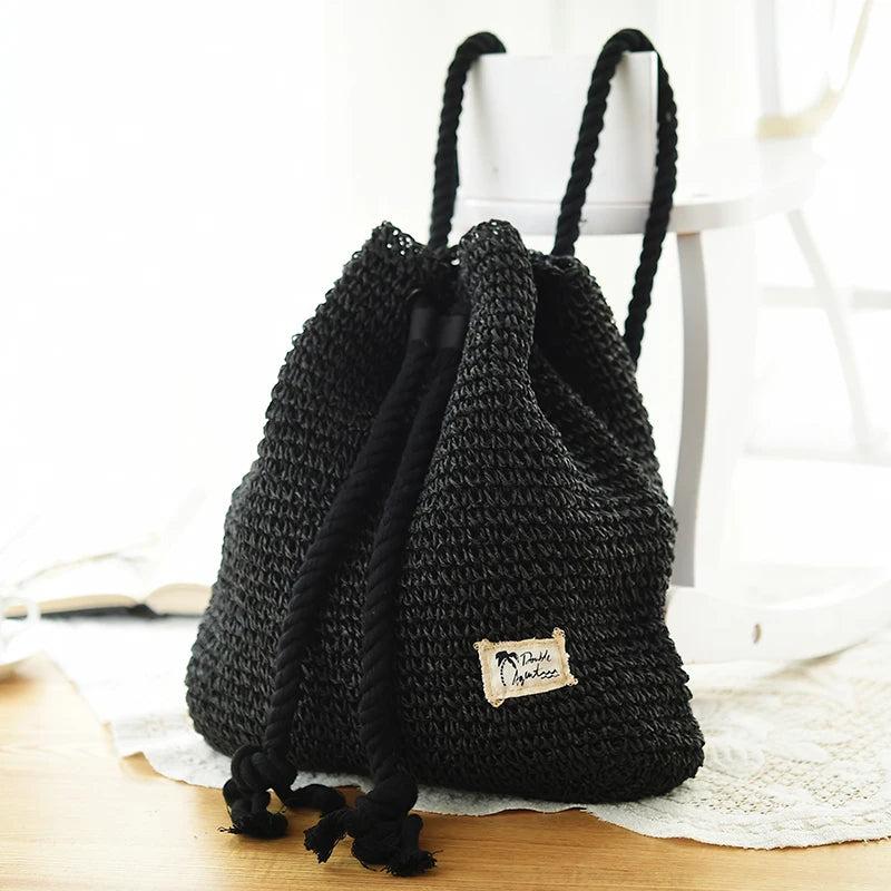 Summer Straw Bag Women Backpack Rucksack for Girls Travel Beach Shoulder Bag