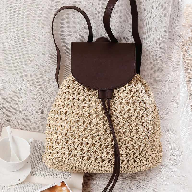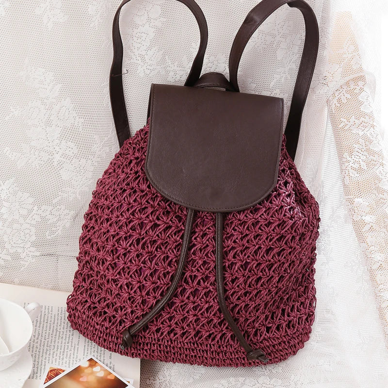 Stay trendy and organized with this large capacity straw backpack, perfect for beach days or traveling.
