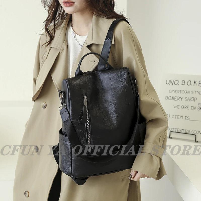 - Versatile PU leather backpack