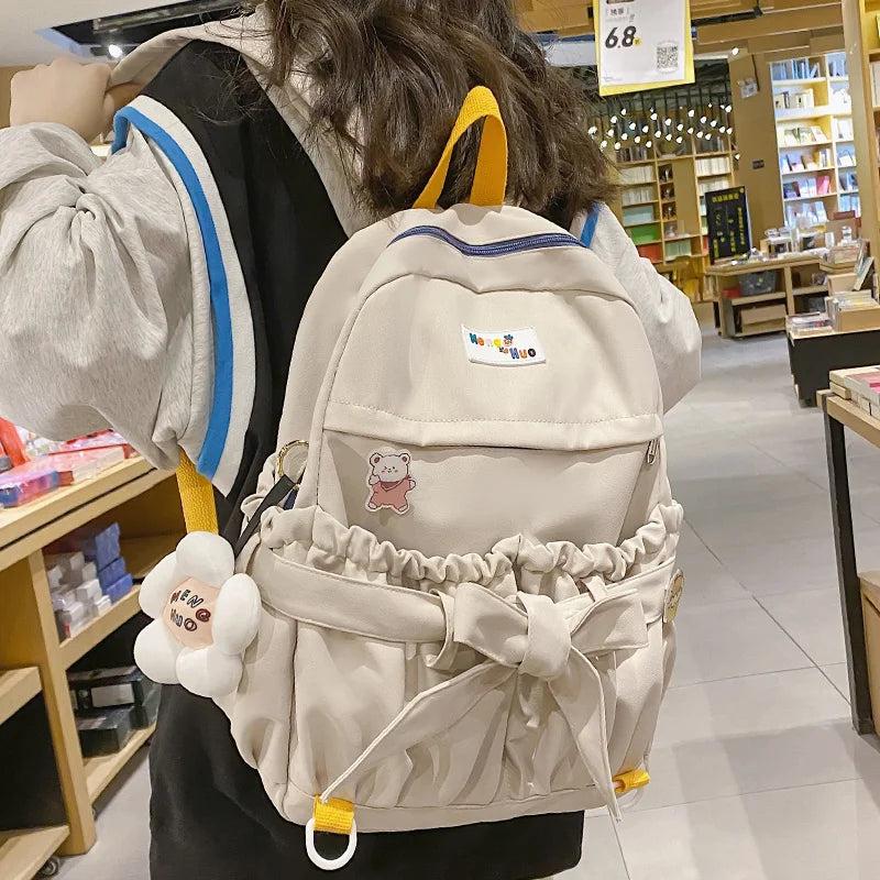 This large capacity school backpack is perfect for students. It features a cute bowknot design and is waterproof to protect your belongings.