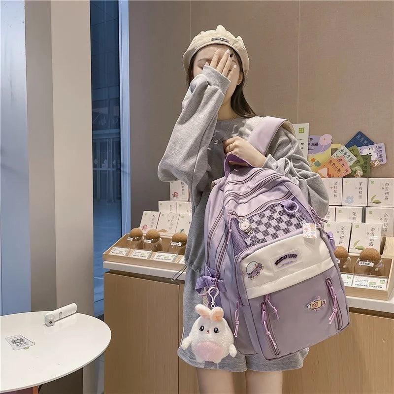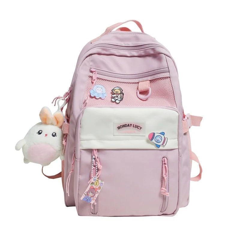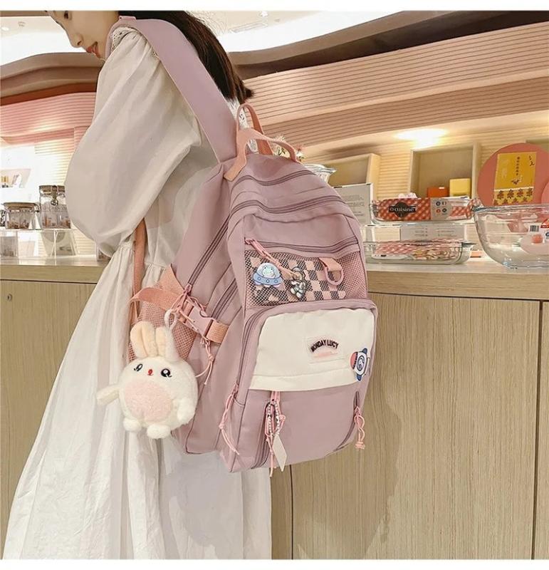 This schoolbag is designed for teenagers with a waterproof nylon material. It offers high capacity for both girls and boys. Ideal for school, travel, and daily use.