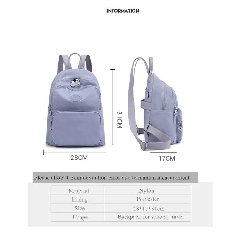 This stylish and practical school bag designed for teenage girls and women is made of durable nylon, suitable for travel and casual use.