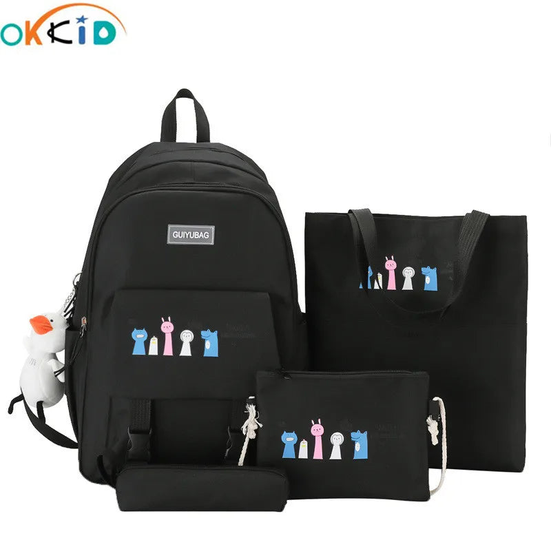 This 4-piece set includes a school backpack, shoulder bag, pencil bag, and laptop bag for teenage girls. Perfect for carrying books, supplies, and electronics in style.