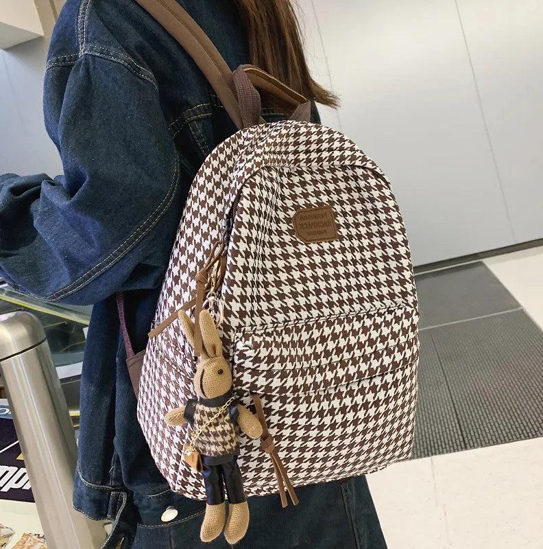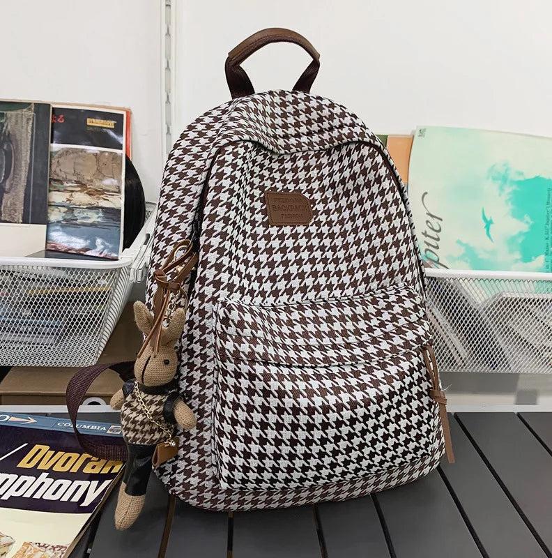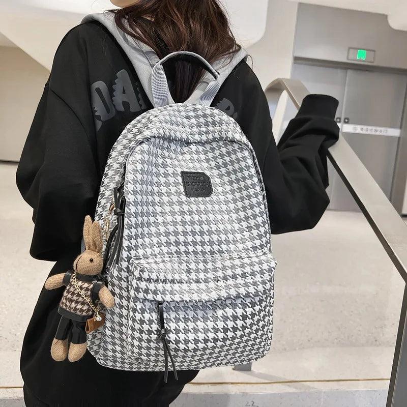Description:This lovely backpack is perfect for teenage girls and features a stylish plaid design. It's made of durable nylon material and is ideal for school or travel.Features: Thousand bird pattern design Made of durable nylon material Ideal for school or travel Adjustable straps for comfortable wear Spacious interior for books...