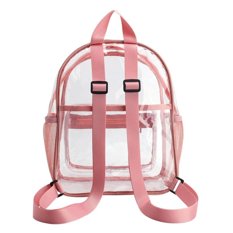 Stay trendy with this transparent PVC backpack perfect for summer outings. It features a large capacity to carry all your essentials and is ideal for students or teenage girls.