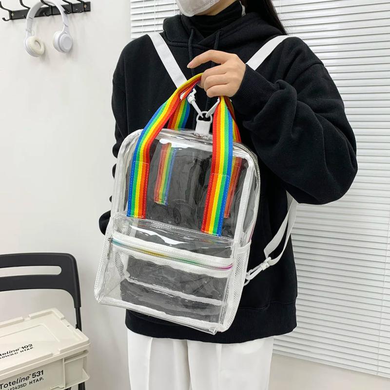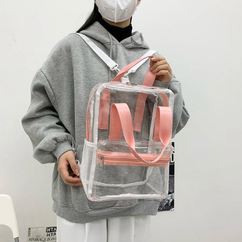 This transparent PVC backpack is perfect for women who need a waterproof and portable schoolbag.