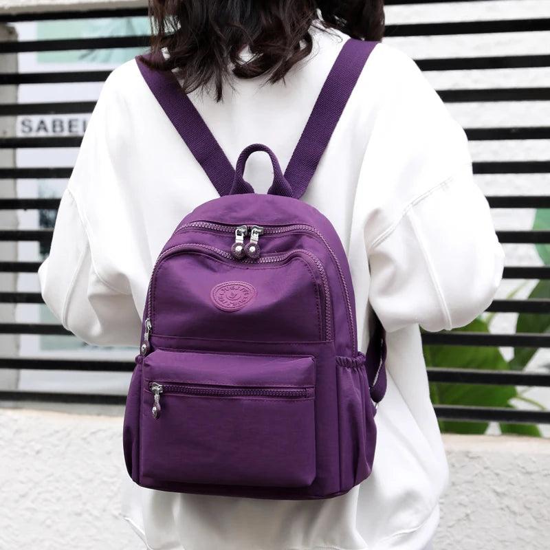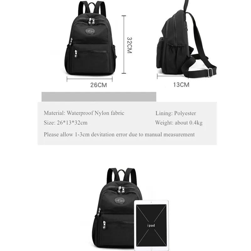 This women's backpack is perfect for travel, school, or casual outings. Made of durable nylon, it offers ample space and comfort.