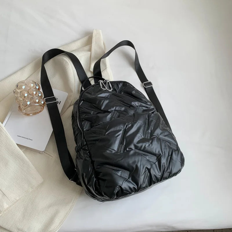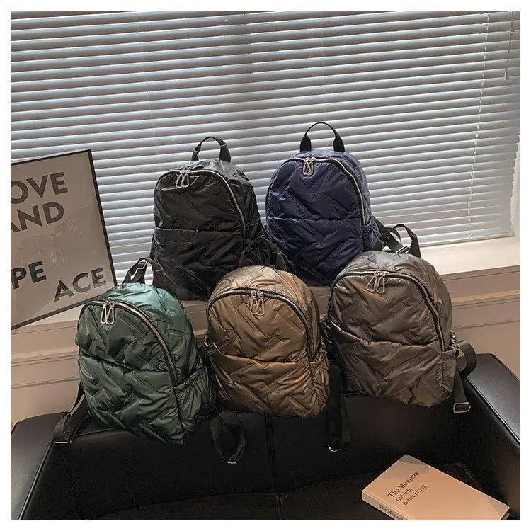 Stay warm and cozy with this ultralight down backpack for students. Perfect for school or travel, made with lightweight cotton puff material.