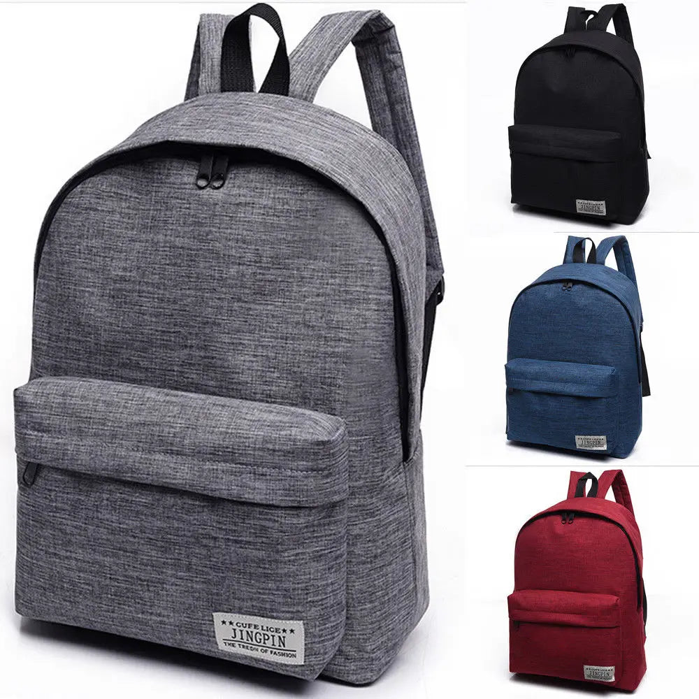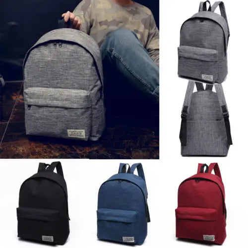 Unisex College Backpack Solid Casual Travel Bag Zipper Closure