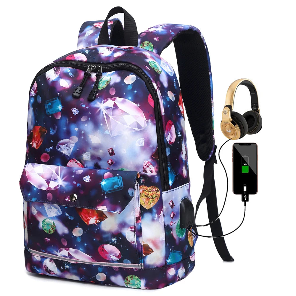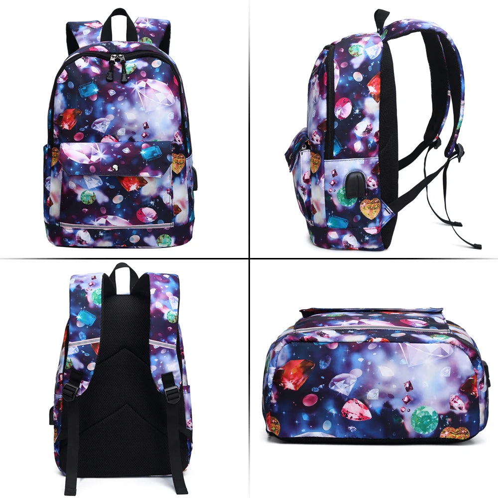 USB Charging School Backpack for Women Travel Backpacks School Bag Teenage Girls