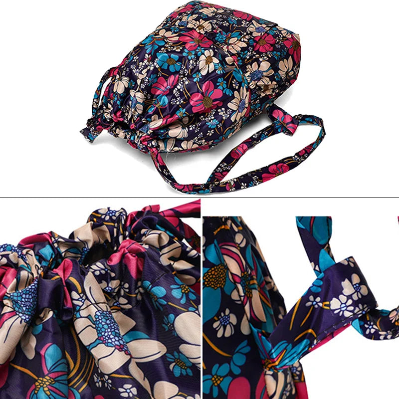 Vintage Drawstring Backpack Flower Ethnic Style Waterproof Nylon Rucksack
