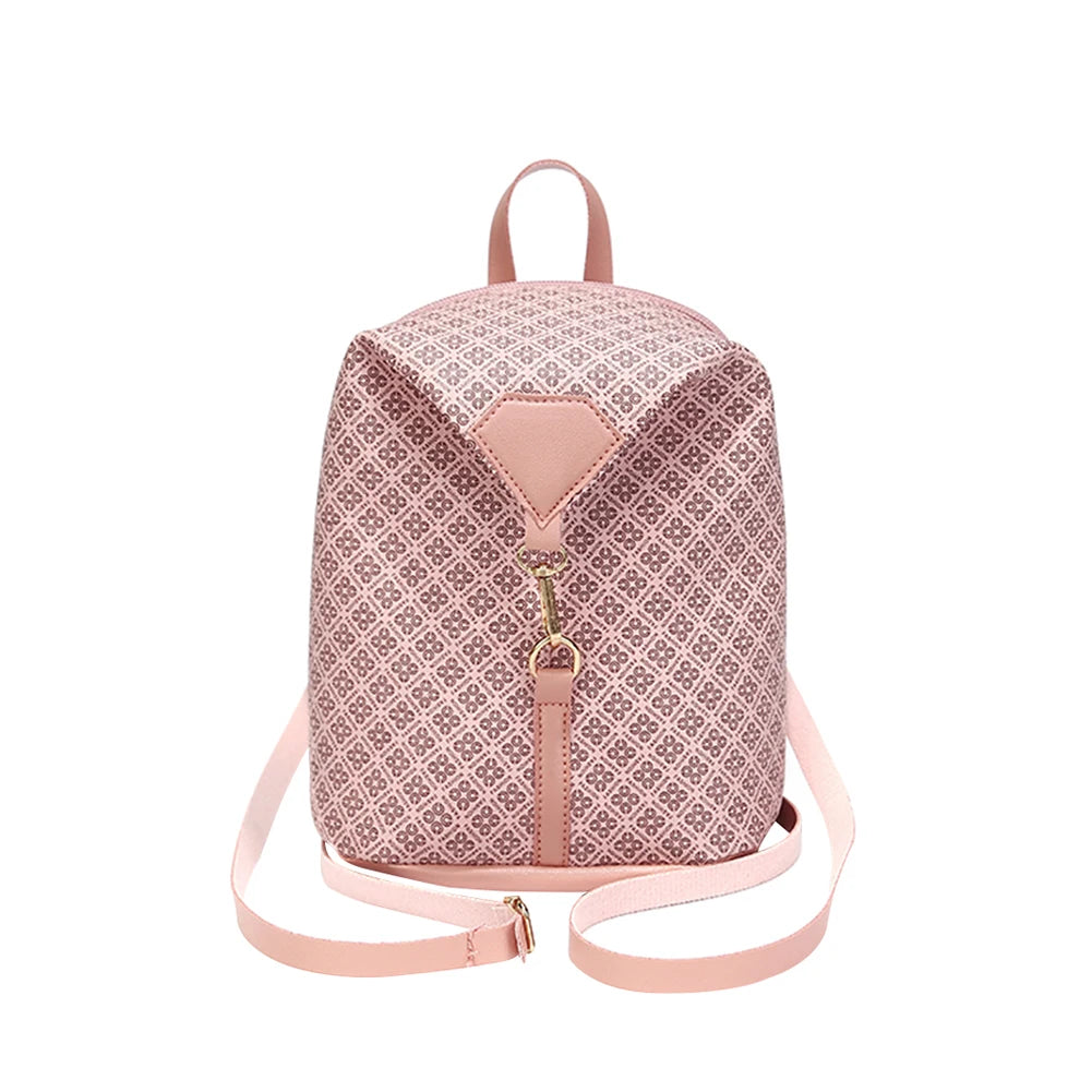 This vintage-style shoulder backpack features a geometric lattice pattern and is made of high-quality PU leather. It is a small, portable rucksack perfect for casual outings and travel. The backpack has a zipper pouch for convenience.