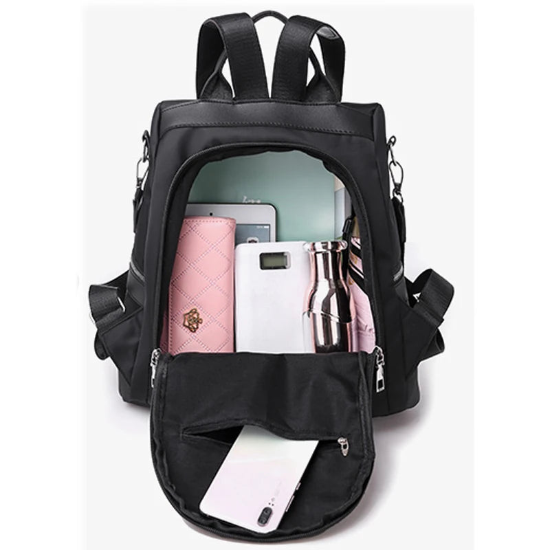 Stay stylish and organized with this large capacity anti-theft travel backpack for women. Made of high-quality leather, it's perfect for school or everyday use.