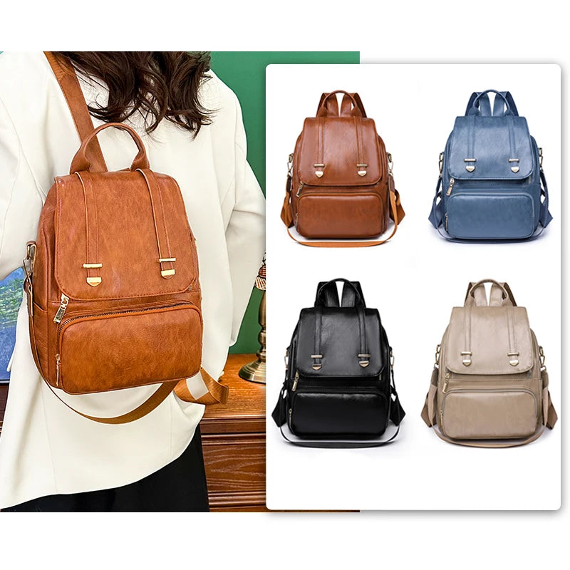 This vintage women backpack is made of high-quality leather with a large capacity. Perfect for school or travel.