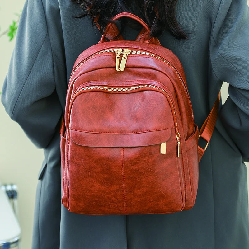 Vintage Women's Leather Backpack Large Capacity Female Bagpack