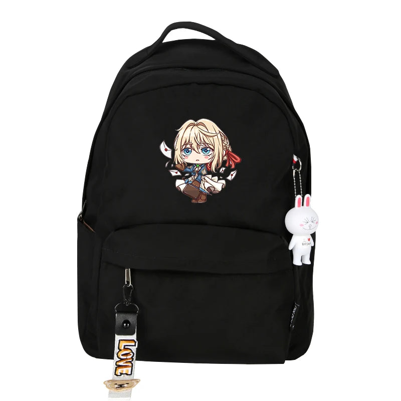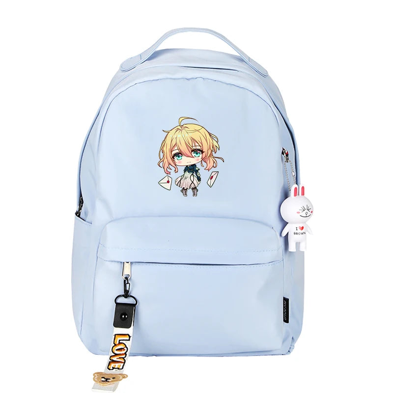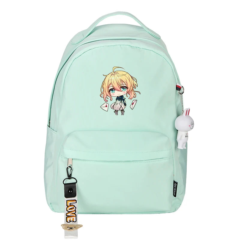 - Adorable pink mini backpack featuring Violet Evergarden design
