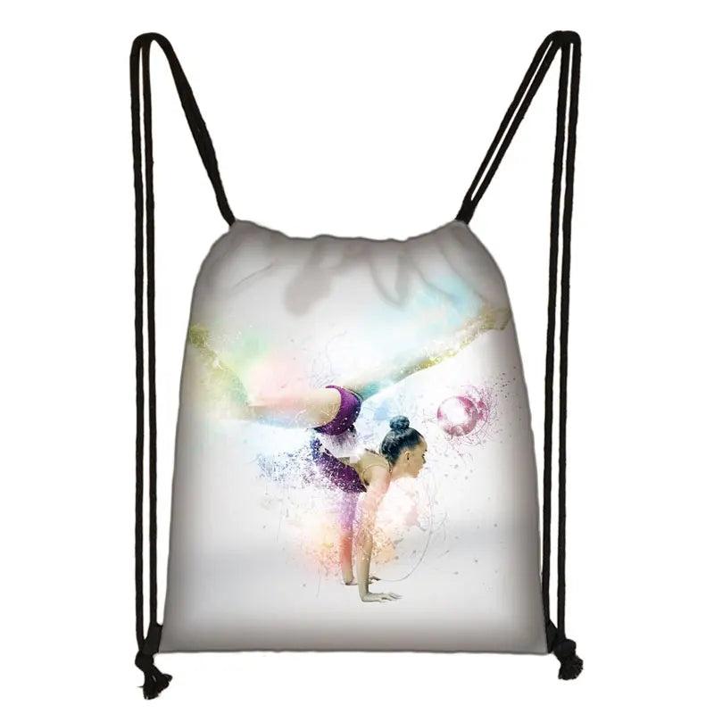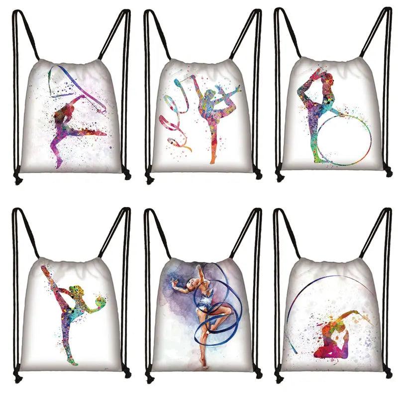Watercolor Gymnastics Drawstring Bag Women Backpack Girls Ballet Daypack