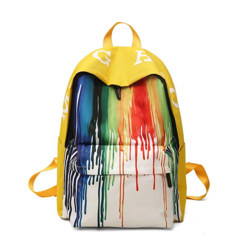 This multi-color backpack features a watercolor ink printing design, perfect for school, travel, or daily use. The graffiti style adds a unique touch to your outfit.