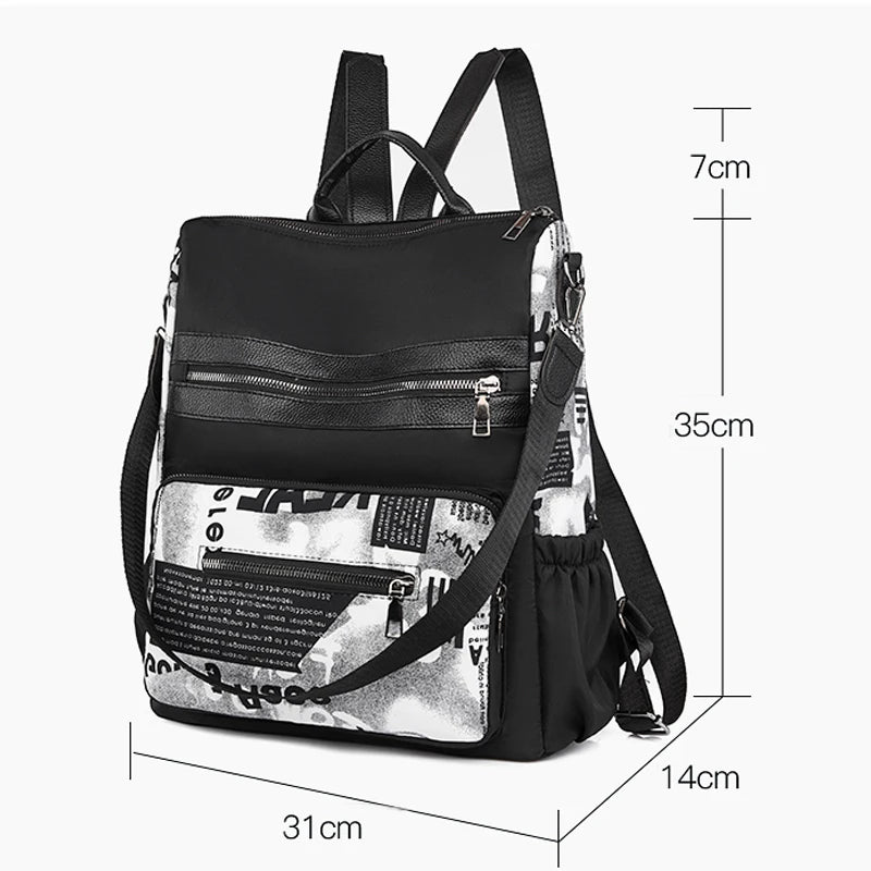 This Oxford cloth backpack is perfect for girls on the go. It is waterproof and features a large capacity, making it ideal for casual travel.