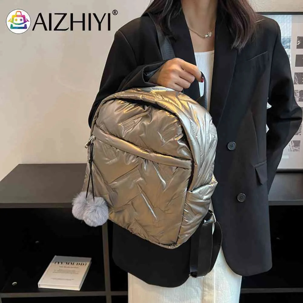 Waterproof Down Cotton School Bags Solid Women Quilted Cotton Backpack