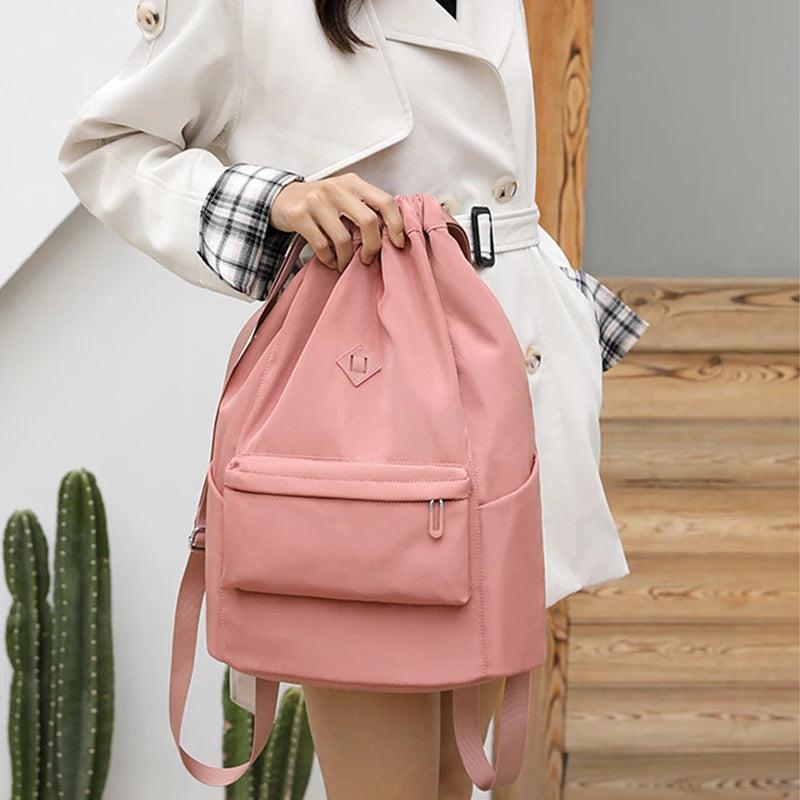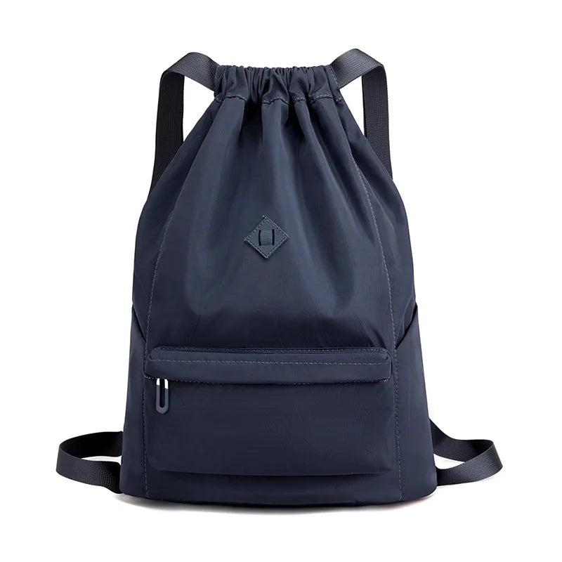 This versatile drawstring backpack is perfect for women and men. It is waterproof, spacious, and great for fitness, sports, travel, or school.
