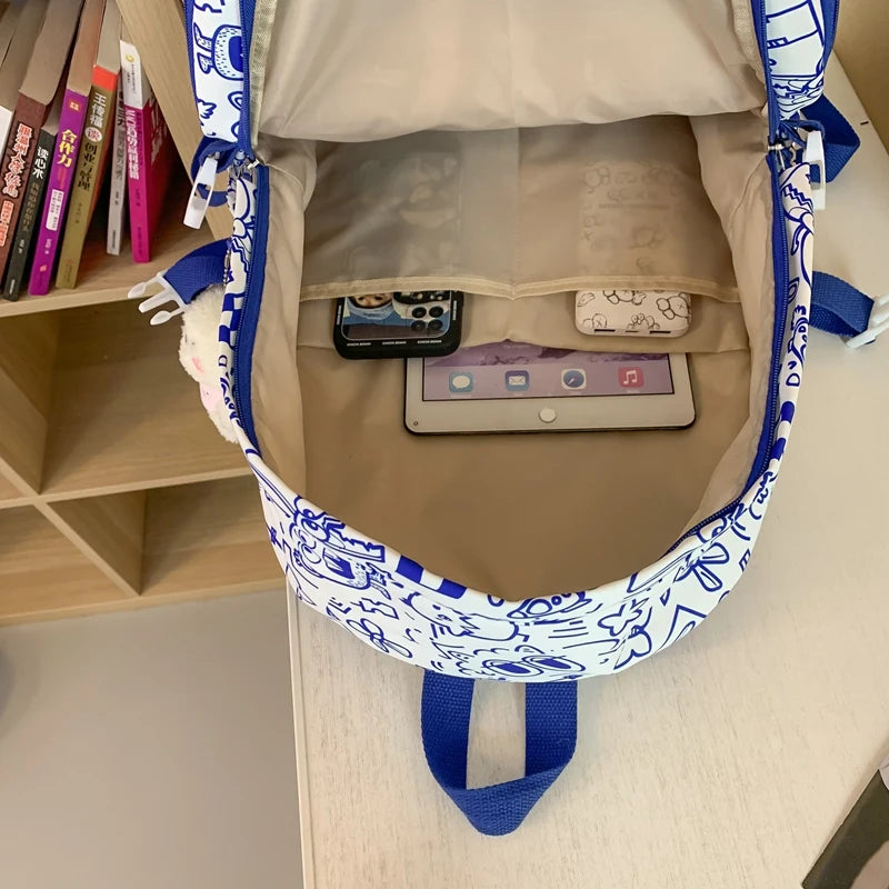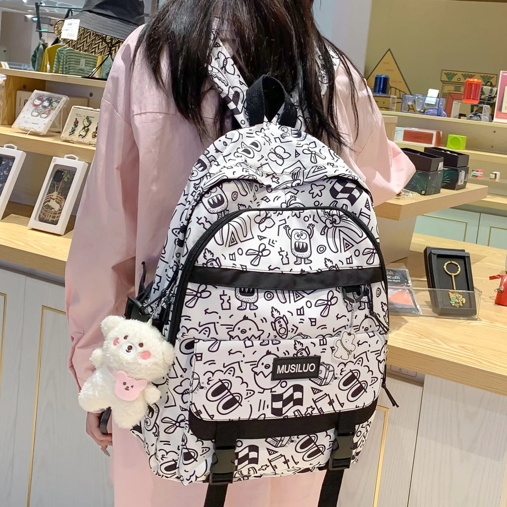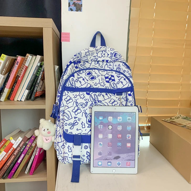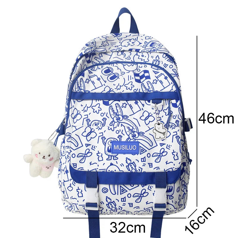 Stay stylish and organized with this Harajuku backpack, perfect for college or travel. Features a cute cartoon print and waterproof design.