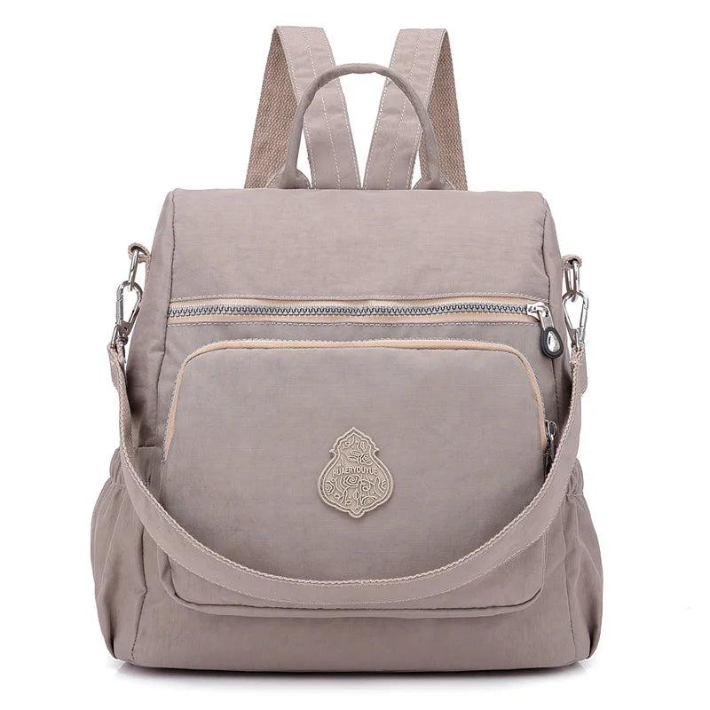 This women's backpack is made of durable nylon cloth and features a spacious interior, suitable for school and everyday use. The waterproof design ensures your belongings stay dry in any weather.