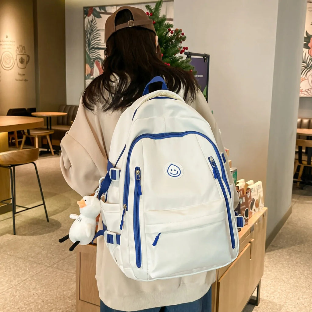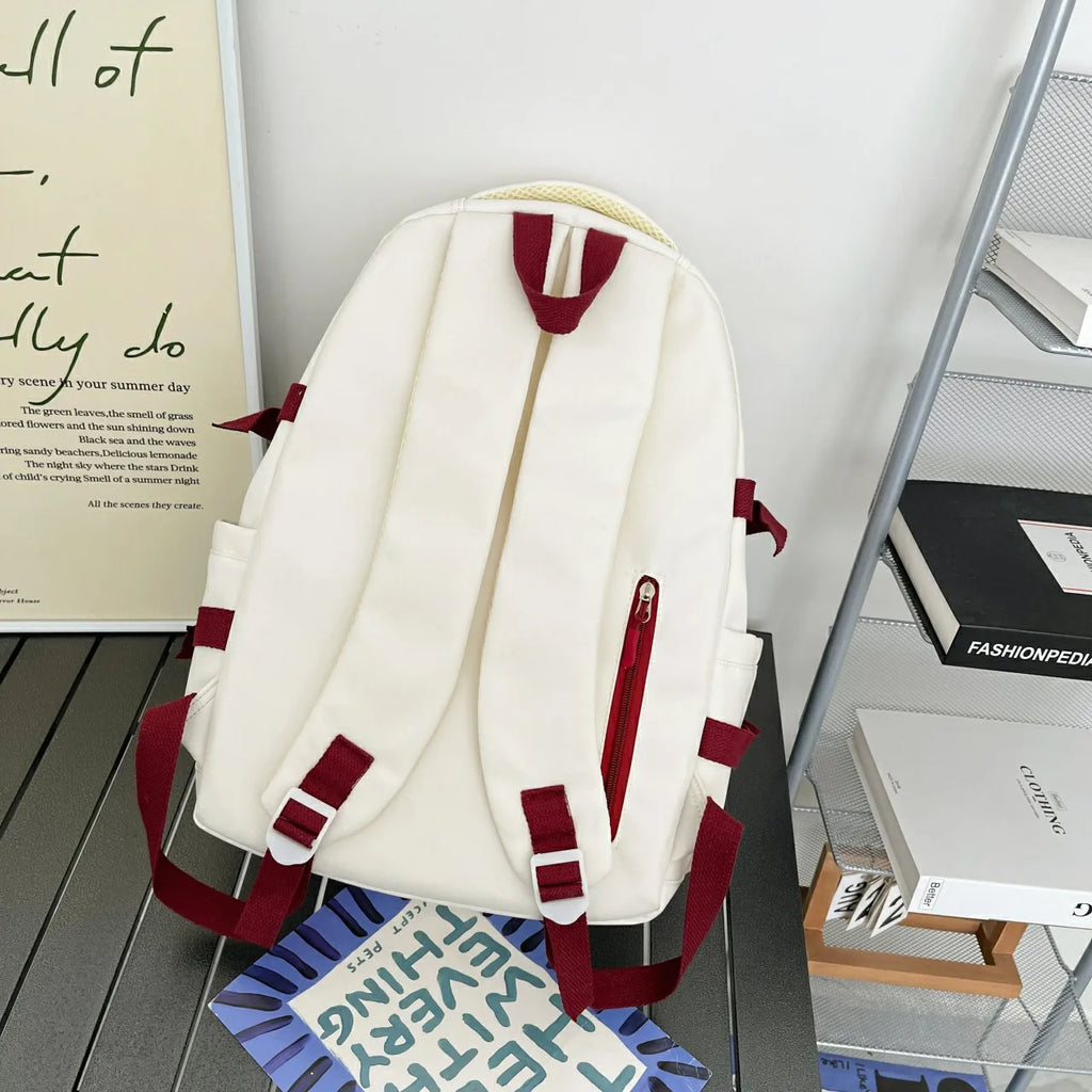 Stay stylish and organized on the go with this waterproof nylon women's backpack. Perfect for travel and school, this backpack offers ample storage space.