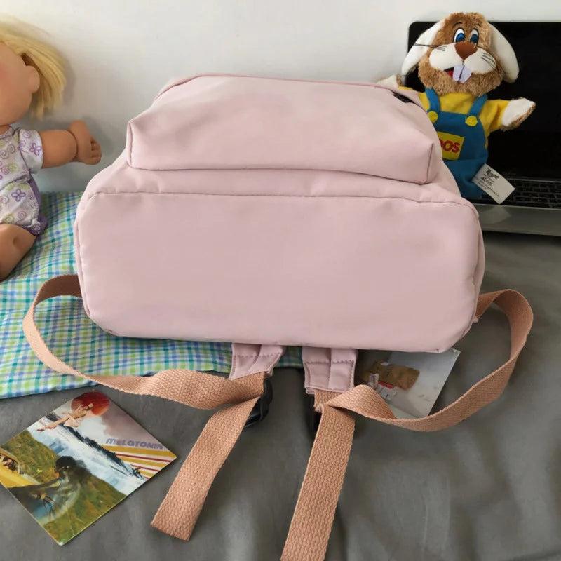 This small fresh college style bookbag is perfect for teenage girls. Made of waterproof nylon, this backpack is durable and suitable for travel.