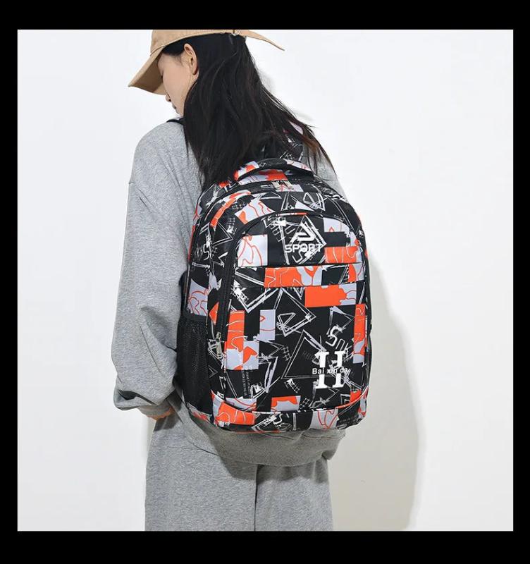 This stylish backpack is made of waterproof nylon material and features a trendy print design. Ideal for travel, school, or as a daily bookbag.