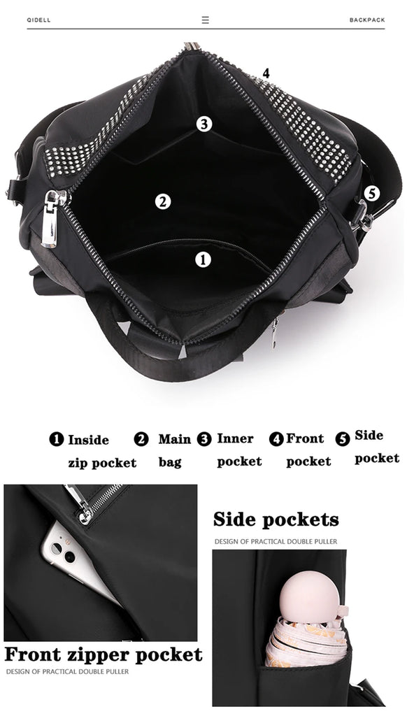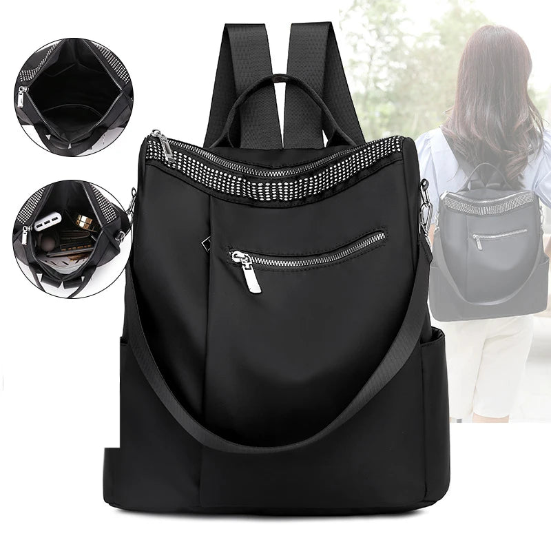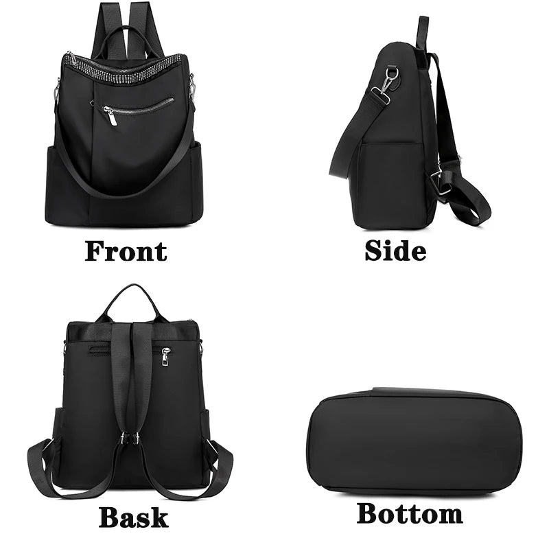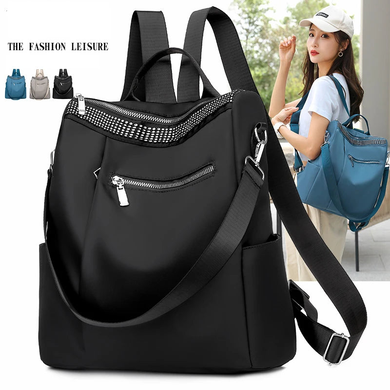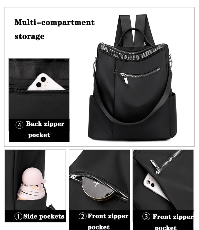 Stay stylish and organized with this multifunctional backpack made of waterproof Oxford material. Perfect for school, travel, or casual outings.
