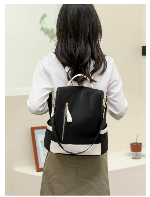 Stay stylish and organized with this waterproof Oxford cloth backpack. It features anti-theft back zipper, perfect for girls and women on-the-go. Ideal for school, travel, or casual outings.