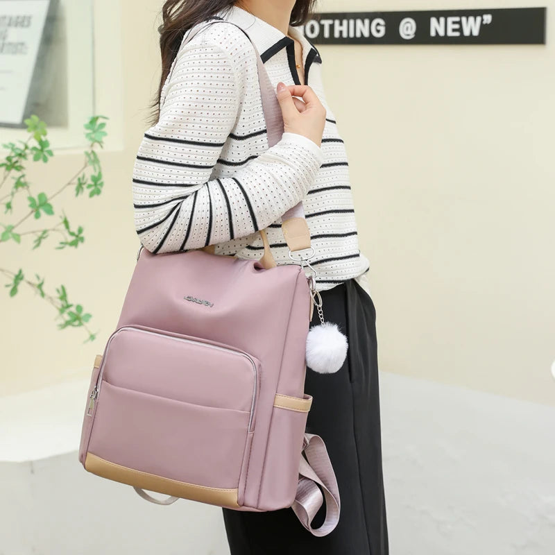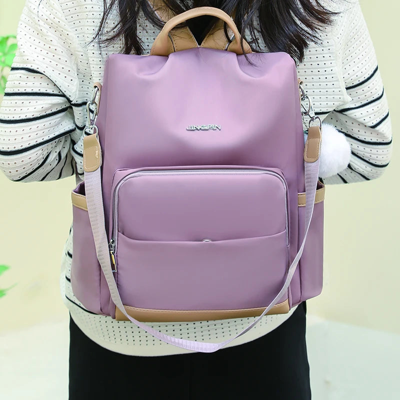 Stay stylish and organized on your travels with this waterproof Oxford travel rucksack. Designed for ladies, this bagpack features an anti-theft backpocket to keep your belongings safe.